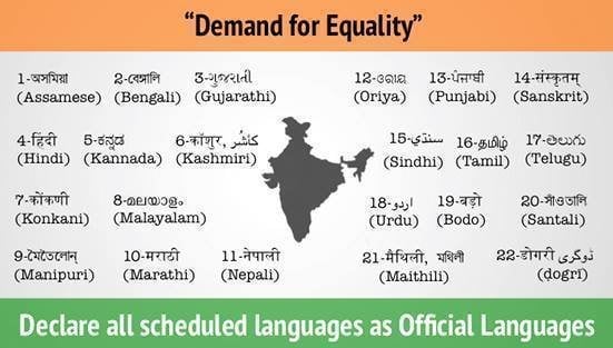 - Eighth Schedule of the Constitution lists 22 scheduled languages.
