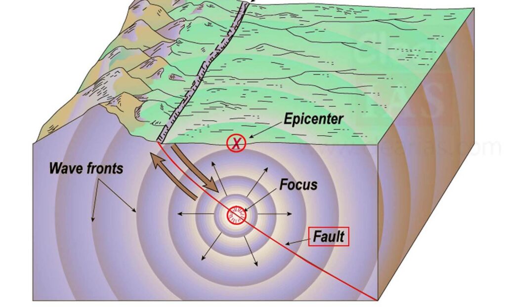 - Seismic Waves Travel Outward: These waves shake the ground and cause an earthquake.
