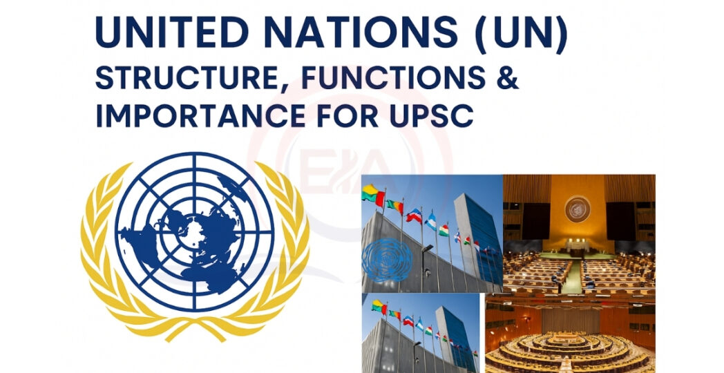 The United Nations (UN) is the world’s largest and most influential intergovernmental organization, playing a vital role in global peace, diplomacy, sustainable development, and humanitarian affairs. It is a core topic for UPSC Prelims and Mains, especially in International Relations, Governance, and Current Affairs.