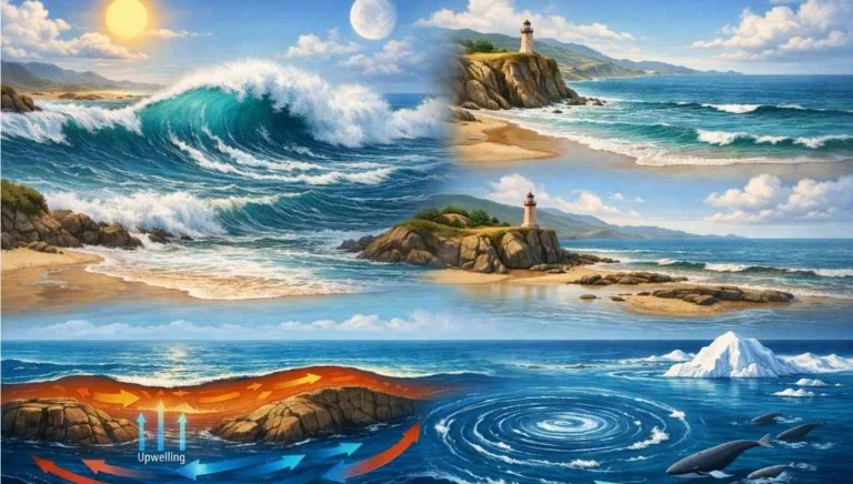 ToggleThe ocean is never still. The movement of its water is categorized into Horizontal Motion (Waves and Currents) and Vertical Motion (Tides and Upwelling/Sinking). These movements are driven by energy from the sun, the gravitational pull of the moon and sun, and the Coriolis Force.